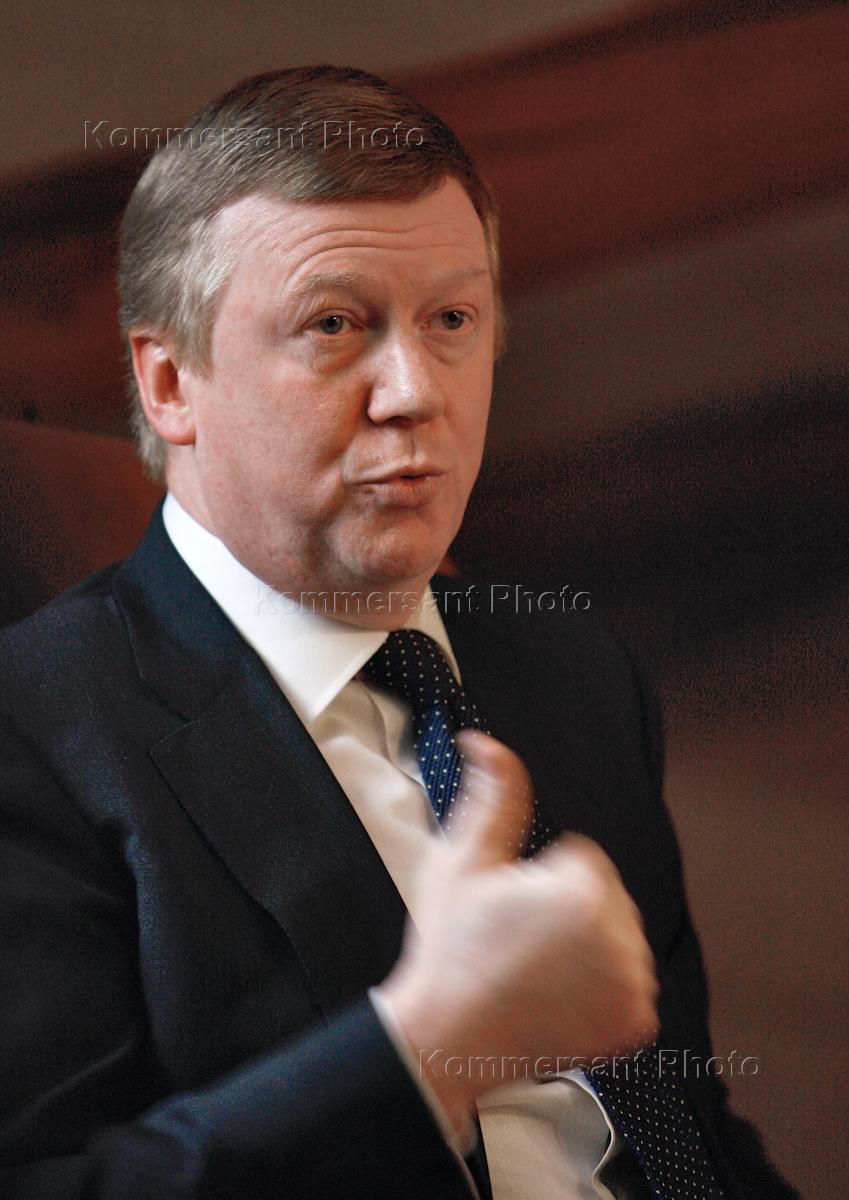 Председатель правления РАО "ЕЭС России" Анатолий Чубайс во время встречи с журналистами Издательского Дома (ИД) "КоммерсантЪ". Встреча прошла в зале заседаний ИД "КоммерсантЪ".