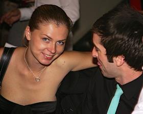 Журналист Михаил Леонтьев (слева) и руководитель отдела специальных проектов "Издательского Дома Родионова" Анна Страздинь (справа) на конкурсе непрофессиональных моделей "Next Door Girls". Конкурс, организованный журналом FHM, прошел в ресторане "Горки".