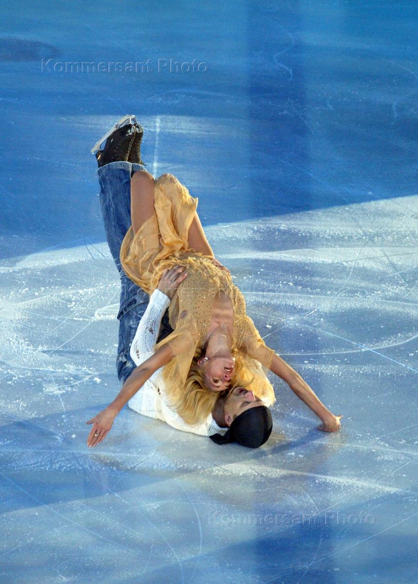 Шоу "Звезды на льду" в Нагорном Дворце Спорта. Фигуристка Ирина Лобачева и актер Дмитрий Марьянов во время выступления.