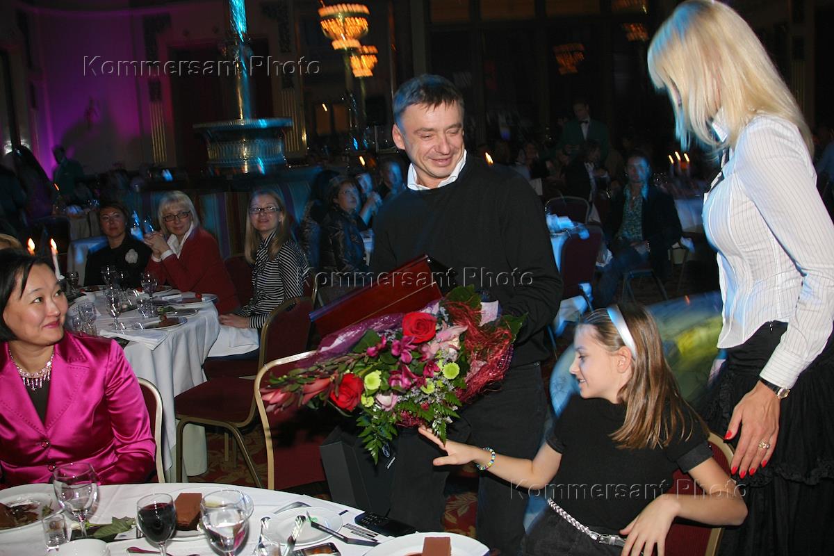 Главный тренер сборной России по художественной гимнастике Ирина Винер (слева), гимнастка Ляйсан Утяшева (в центре) и владелец сети солярий-клубов "Сан и Сити" Антон Винер (справа) на церемонии вручения премии "Карьера года". Церемония прошла в отеле "Метрополь".