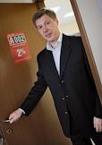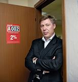 Генеральный директор риэлторовской компании "Агент 002" Леонид Меньшиков во время интервью в своем рабочем кабинете.