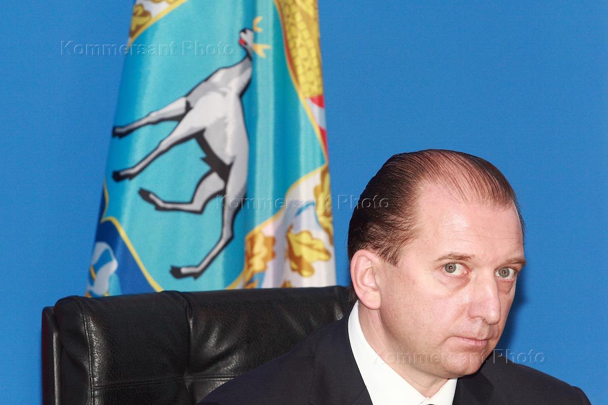 Губернатор Самарской области Владимир Артяков на пресс-конференции, посвящённой смене собственника, руководства и главного тренера футбольного клуба "Крылья Советов". Пресс-конференция прошла в Доме правительства Самарской области.