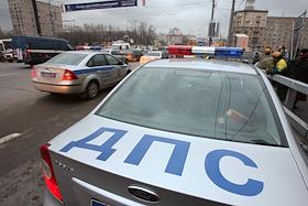Автомобиль Дорожно-патрульной службы (ДПС) Министерства внутренних дел (МВД) России на улице города.