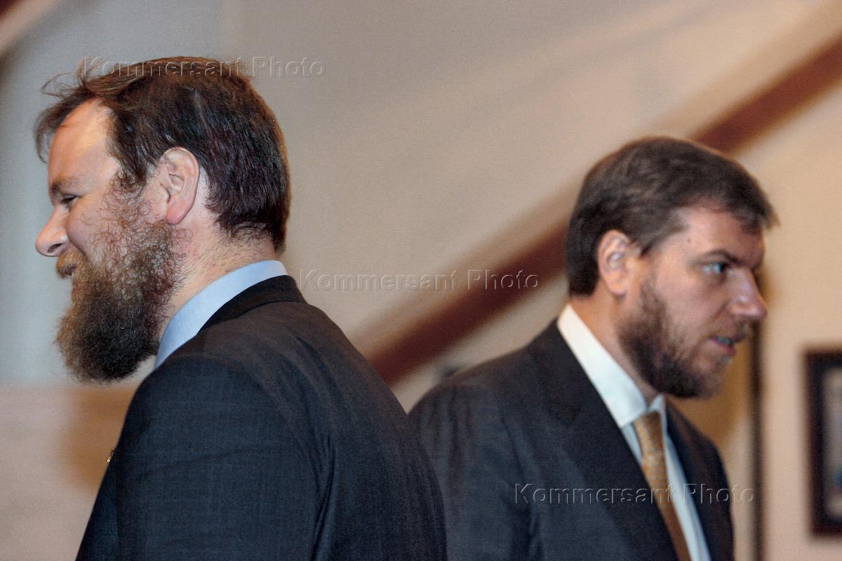 Представитель в Совете Федерации от законодательного органа государственной власти Ямало-Ненецкого автономного округа Дмитрий Ананьев (слева) и председатель совета директоров "Промсвязьбанка" Алексей Ананьев (справа) - совладельцы "Промсвязьбанка" во время встречи с журналистами Издательского Дома (ИД) "КоммерсантЪ". Встреча прошла в зале заседаний редколлегии ИД "КоммерсантЪ".