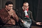 Актер Дмитрий Назаров (слева) во время спектакля "Танец альбатроса" по лирической комедии Жеральда Сиблейраса в постановке режиссера Олега Тополянского в Московском художественного театра (МХТ) имени Чехова.