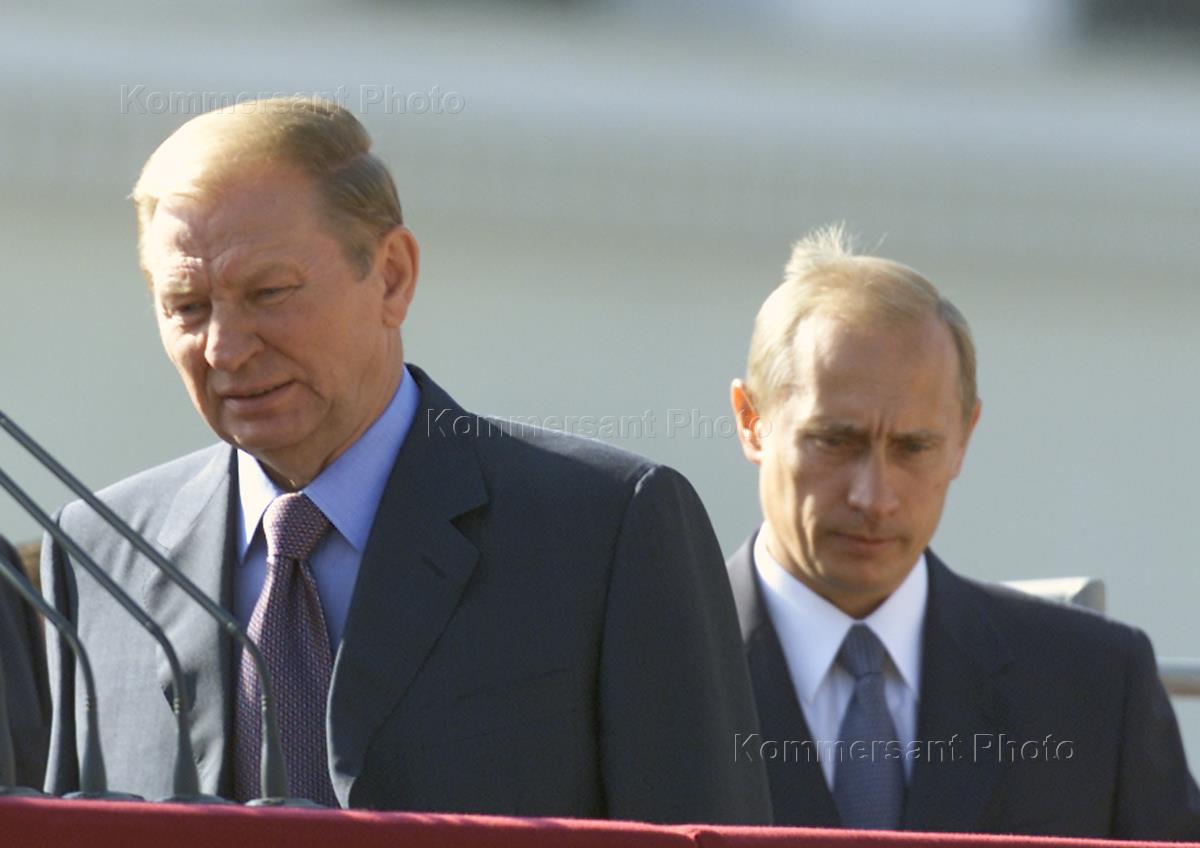 Russian President Vladimir Putin (left) and his Ukrainian counterpart Leonid Kuchma (right) attend a military parade staged in Kiev to mark the 10-th anniversary of Ukraine's independence.