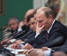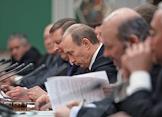 Президент России Владимир Путин (в центре) на встрече с представителями Торгово-Промышленной Палаты. Встреча прошла в здании Торгово-промышленной палаты (ТПП) России.