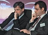 Главный редактор "The Economist" по Европе Джон Пит (слева) и генеральный директор инвестиционного банка "Nomura (CIS) Ltd." по России Максим Сельцер (справа) на конференции Global Investment and Finance Forum. Конференция прошла в отеле "Ritz Carlton".