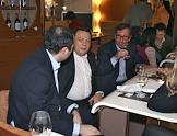Бизнесмен Ваге Енгибарян (слева), председатель Совета директоров концорцума "Альфа-Групп" Михаил Фридман (в центре) и президент "Альфа-банка" Петр Авен (справа) на презентация нового диска "Веселые картинки" джазмена Игоря Бутмана. Презентация прошла в "Bosco Bar".