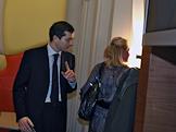 Заместитель руководителя администрации Президента России Владислав Сурков (в центре) с супругой джазмена Игоря Бутмана Оксаной (слева) на презентация нового диска "Веселые картинки" Игоря Бутмана. Презентация прошла в "Bosco Bar".