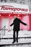 Генеральный директор компании "Алтан" Валерий Покорняк у входа в магазин "Пятерочка".