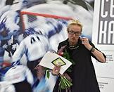 Директор Московского Дома фотографии Ольга Свиблова на церемонии открытия выставки работ участников конкурса на лучший фоторепортаж о Москве "Серебряная камера 2006". Выставка прошла в Центральном Выставочном Зале "Манеж".