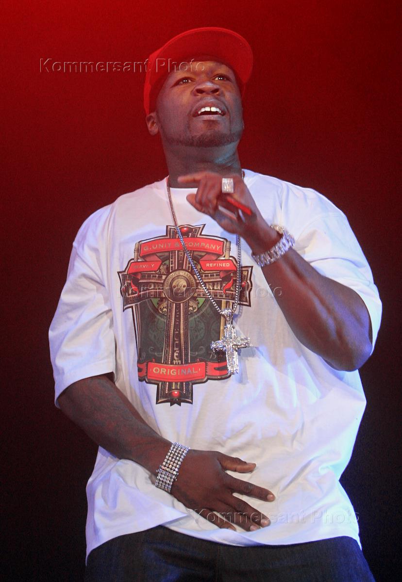 50 Cent, left, performs during concert in Megasport Sports Palace.