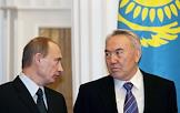 Президент России Владимир Путин (справа) и президент Казахстан Нурсултан Назарбаев (слева) на совместной пресс-конференции после подписания соглашения между Правительствами России, Казахстана и Туркменистана о сотрудничестве в строительстве Прикаспийского газопровода. Церемония подписания и пресс-конференция прошли в Кремле.