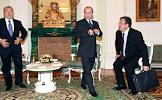 Заместитель главы администрации Президента России Сергей Приходько (справа) во время встречи Президента России Владимира Путина (в центре) с президентом Казахстана Нурсултаном Назарбаевым (слева). Встреча прошла в Кремле.