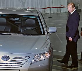 Президент России Владимир Путин во время посещения нового филиала завода японской компании "Toyota" (Тойота) в пригороде Санкт-Петербурга Шушары, где начался выпуск автомобилей "Toyota" "Camry".