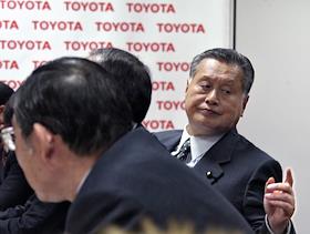 Экс-премьер Японии Йосиро Мори (справа) на церемонии открытия нового филиала завода японской компании "Toyota" (Тойота) в пригороде Санкт-Петербурга Шушары, где начался выпуск автомобилей "Toyota" "Camry".