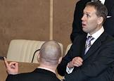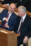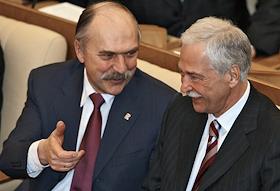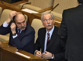 Депутаты Государственной Думы России от фракции "Единая Россия" Владимир Пехтин (слева) и Борис Грызлов (справа) во время первого организационного заседания Госдумы V-ого созыва.