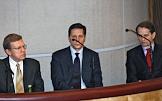 Депутаты Государственной Думы России от фракции "Единая Россия" Сергей Марков (слева), Владимир Плигин (в центре) и Борис Грызлов (справа) во время первого организационного заседания Госдумы V-ого созыва.