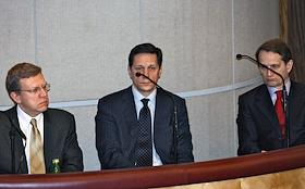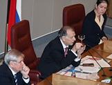 Заместители председателя Правительства России: министр финансов России Алексей Кудрин (слева), Александр Жуков (в центре) и Сергей Нарышкин (справа) во время первого организационного заседания Государственной Думы России V-ого созыва.