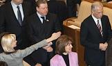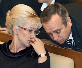 Депутаты Государственной Думы России от фракции "Единая Россия" Светлана Хоркина (слева) и Борис Грызлов (справа) во время первого организационного заседания Госдумы V-ого созыва.