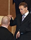 Заместители председателя Правительства России: министр финансов России Алексей Кудрин (слева) и Александр Жуков (справа) во время первого организационного заседания Государственной Думы России V-ого созыва.