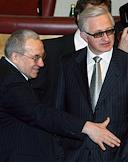 Депутат Государственной Думы России от фракции "Единая Россия" Андрей Кокошин (слева) и президент Российского союза промышленников и предпринимателей (РСПП) Александр Шохин (справа) во время первого организационного заседания Госдумы V-ого созыва.