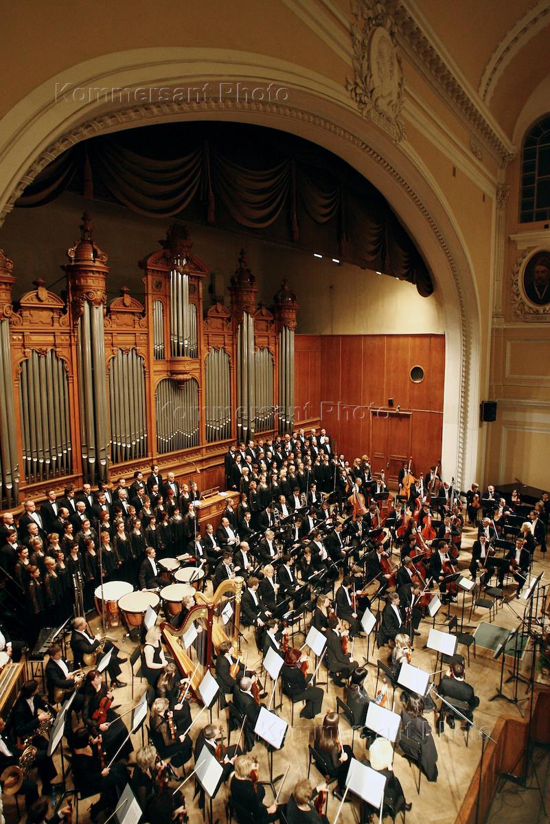 Открытие фестиваля "Русская зима". Концерт симфонического оркестра и хора Большого театра России под руководством дирижера из Чехии Иржи Белоглавека. Концерт прошел в Большом зале консерватории имени П.И. Чайковского.