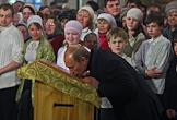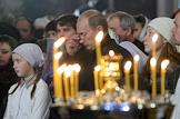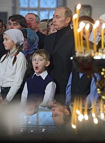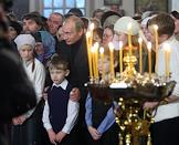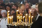 Президент России Владимир Путин на рождественском богослужении в Прокопьевском соборе во время своего визита в Велий Устюг.