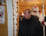 Президент России Владимир Путин (в центре) во время посещения резиденции Деда Мороза под Великим Устюгом.