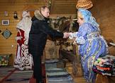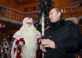 Президент России Владимир Путин (справа) во время посещения резиденции Деда Мороза под Великим Устюгом.