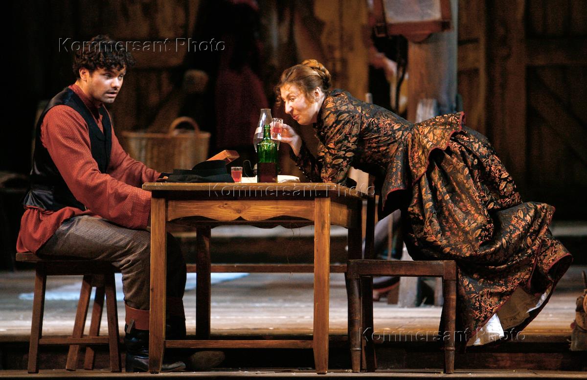 Актриса Ирина Муравьева (слева) в спектакле "Власть тьмы или коготок увяз, всей птичке пропасть". Спектакль в постановке режиссера Юрия Соломина по драме Льва Толстого "Власть тьмы" прошел на сцене Малого театра.
