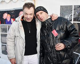 Председатель совета директоров СП "Каро" Леонид Огородников (слева) и президент "Каро-фильм" Олег Андреев (справа) на концерте группы "Ленинград" в ресторане "Матисс" на горе Corviglia.