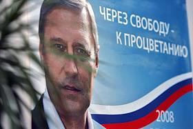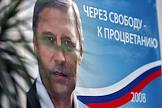 Акция по показу результатов сбора подписей в поддержку кандидата на выборах Президента России Михаила Касьянова. Акция прошла в офисе "Народно-демократического союза" (НДС). Агитационный плакат предвыборной кампании Михаила Касьянова.
