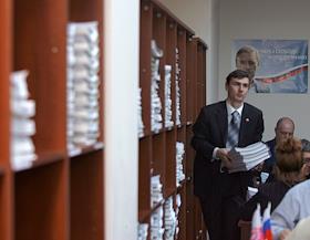 Акция по показу результатов сбора подписей сторонников кандидата на выборах в Президента России Михаила Касьянова. Акция прошла в офисе "Народно-демократического союза" (НДС).