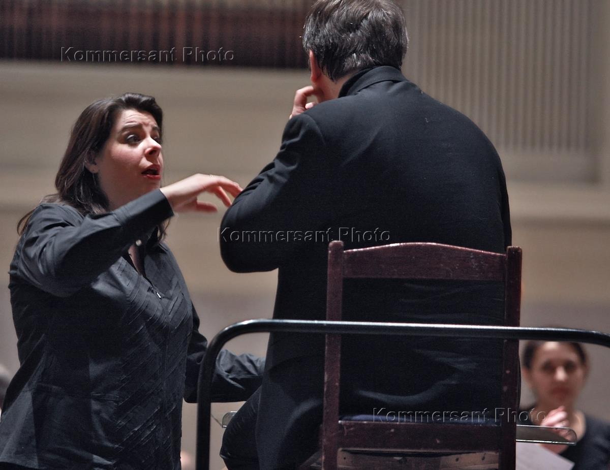 Итальянская оперная певица Даниэла Барчелона (колоратурное меццо-сопрано) (слева) во время репетиции перед концертом в Московской филармонии.