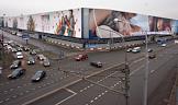 Рекламные плакаты на ограждении строительной площадки разбора гостиницы "Россия".