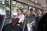 Пассажиры в автобусе города Иркутска.