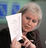 Член Центральной избирательной комиссии Людмила Демьянченко во время пресс-конференции на тему: "Об открепительных удостоверениях для президентских выборов - 2008". Пресс-конференция прошла в РИА "Новости".