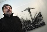 Художник Константин Батынков на церемонии открытия своей выставки "Москва" (графика, фотография, живопись) в "Крокин галерее".