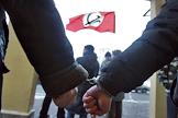 Акция активистов "Национал-большевисткой партиии" (НБП) против "нелегитимной Госдумы". Участники акции блокировали дом на улице Улофа Пальме, где проживают иногородние депутаты, и потребовали от них сложить полномочия, поскольку выборы были сфальсифицированы и Дума является нелегитимной.