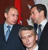 Президент России Владимир Путин (слева), первый заместитель председателя Правительства России Дмитрий Медведев (справа) и президент ОАО "Газпромнефть" Александр Дюков (в центре) во время деловой встречи с президентом Сербии Борисом Тадичем в Кремле. Темы встречи - проблема Косово, вопросы сотрудничества на международной арене, обмен мнениями по всему комплексу двусторонних отношений.