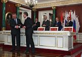 Президент России Владимир Путин (второй справа), первый заместитель председателя Правительства России Дмитрий Медведев (справа), президент Сербии Борис Тадич (третий справа) и председатель Правительства Сербии Воислав Коштуница (четвертый справа) во время деловой встречи в Кремле. Россия и Сербия заключили стратегическое межправительственное соглашение в нефтегазовой сфере сроком на 30 лет. В присутствии президентов двух стран документ подписали министр промышленности и энергетики России Виктор Христенко (второй слева) и министр по инфраструктуре Сербии Велимир Илич (слева).