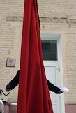 Window of the "Arbat-Prestige" store in the Sokol district.
