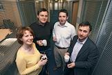 Управляющие директора ООО "Да Винчи Капитал": Наталья Иванова (слева), Глеб Яковлев (второй слева), Евгений Фетисов (в центре) и управляющий партнер инвестиционного фонда "Да Винчи" Олег Железко (справа) в здании офиса фонда в "Лотте Плаза".