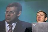 Форум "Россия". Президент Академии российского телевидения, телеведущий Владимир Познер (слева) и министр финансов России Алексей Кудрин (справа) на заседании "Новые задачи, стоящие перед Россией". Форум прошел в Гостином Дворе.