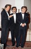 Первый московский благотворительный бал в пользу молодых артистов Большого театра в городском семейном клубе "Монолит". Слева направо: телеведущий Святослав Бэлза, руководитель мимического ансамбля Государственного академического Большого театра (ГАБТ), балетмейстер Юрий Папко и исполнительный директор ГАБТ Владимир Коконин во время бала.