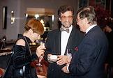 Первый московский благотворительный бал в пользу молодых артистов Большого театра в городском семейном клубе "Монолит". Слева направо: корреспондент ИД "Коммерсантъ" Татьяна Кузнецова, руководитель мимического ансамбля Государственного академического Большого театра (ГАБТ), балетмейстер Юрий Папко и исполнительный директор ГАБТ Владимир Коконин во время бала.