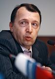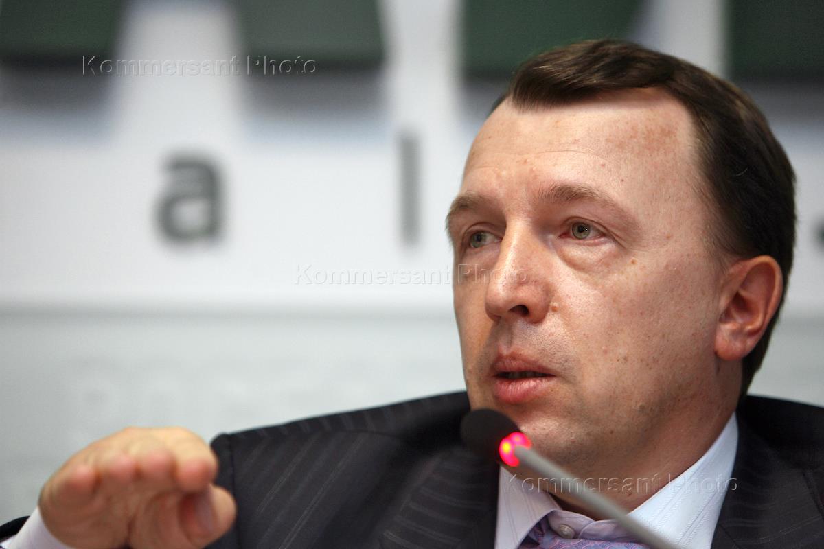 Генеральнный директор Научно-исследовательского, проектного и конструкторского Центра драгоценных металлов и алмазов "НБЛ золото" Михаил Лесков во время брифинга на тему: "2008 год - год золота?". Брифинг прошел в офисе информационного агентства "Росбалт".