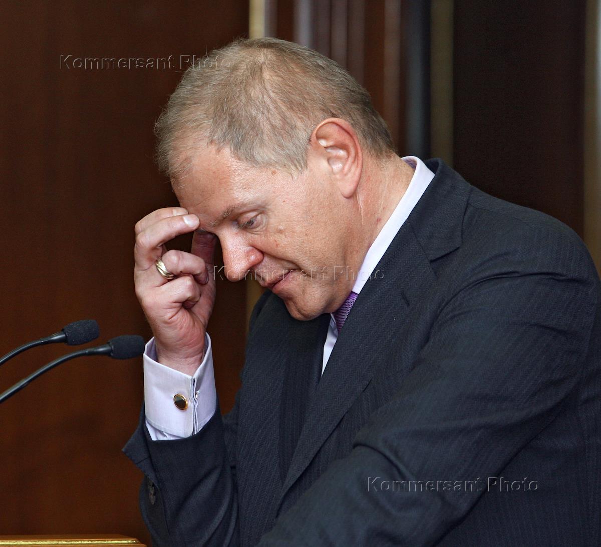 Руководитель Федерального агентства России по рыболовству Андрей Крайний во время заседания Совета в Совете Федерации России по вопросам агропромышленного и рыбохозяйственного комплекса России.